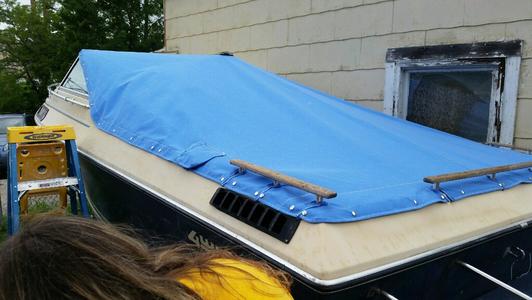 Another happy sailor protecting his investment with one of the finest pieces of canvas fabricated on the high seas.